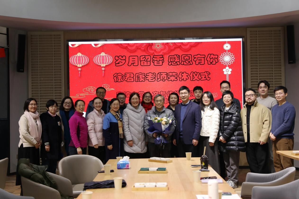 在校友之家举办了徐君康老师的荣休仪式,仪式由学院工会主席黄维琴主持,学院党政领导、新闻传播学系教师共20余人参加了该仪式。