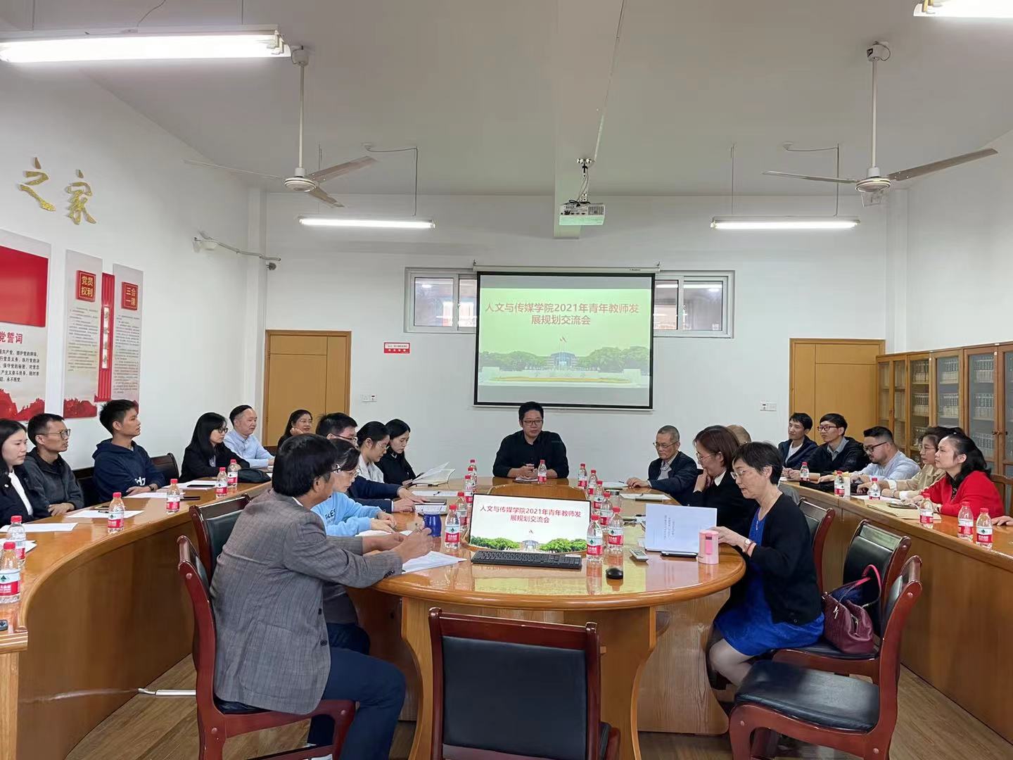 青年教师发展规划交流会在包玉书科学楼10#216会议室召开。会议由副院长童杰主持,党委书记张佩芬、副院长李乐、分工会主席黄维琴、新闻传播学系主任宁海林、对外汉语教学部主任毛海莹、教授代表孙善根教授、尹德翔教授、贺雪飞教授以及近五年入职人文学院的24名青年教师参加了会议。