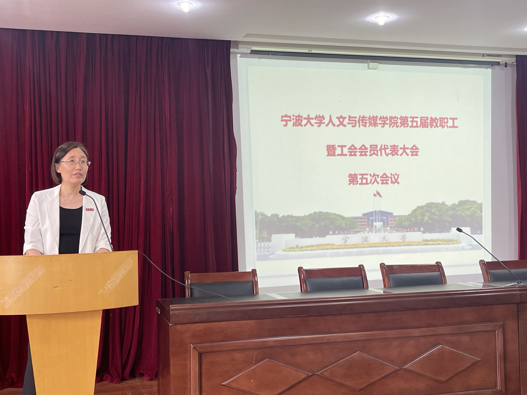 第五届教职工暨工会会员代表大会第五次会议在包玉书科学楼10号楼209报告厅召开。会议由学院党委书记张佩芬主持,36名正式代表参加会议。