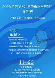 2022年11月25日下午,湖南文艺出版社社长、《芙蓉》杂志社社长兼主编陈新文应邀作了题为“人生的基建——关于阅读、写作及其它”的讲座。受疫情影响,本次活动以线上线下结合的方式进行。
