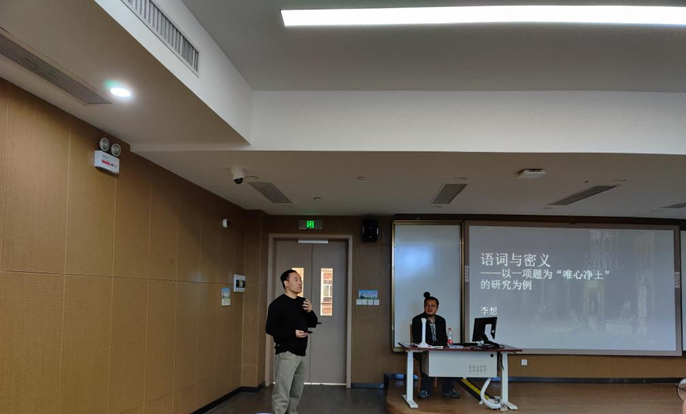 历史学专业系列讲座在北区2号楼307教室举行。中国社会科学院世界宗教研究所助理研究员、《世界宗教研究》编辑李想博士应邀作题为“语词与密义——以一项题为‘唯心净土’的研究为例”的讲座,本次讲座由历史学系主任张凯副教授主持,佛教文化研究中心主任尚永琪教授评议。