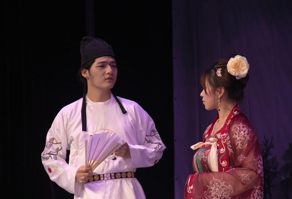 5个社团展示一场精彩的视觉盛宴。首先是传统舞蹈节目《一梦千年》,接着是话剧《风声》、朗诵、历史情景剧等节目,节目非常精彩,现场掌声不断,最后由第一版主