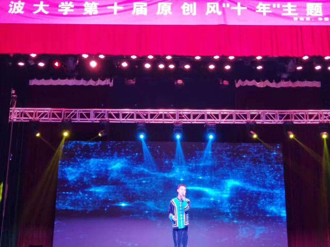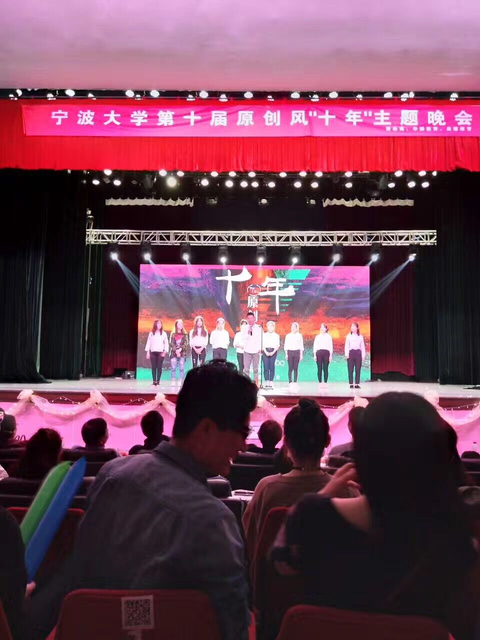 4月22日晚6:30,第一版主 学生会主办“十年”原创风晚会在林杏琴会堂顺利举办。晚会邀请学院领导、团委老师出席并担任嘉宾。 晚会独出心裁,采用无主持模式,利了炫酷舞台效果带我们重温经典。开场以零八年北京奥运会主题曲《北京欢迎你》拉开本届原创风晚会序幕。晚会节目形式多样,有歌曲,朗诵,小品,舞蹈等等,以此带领观众回忆过去十年创作。 晚会在歌曲《十年》优美旋律中顺利落下帷幕。