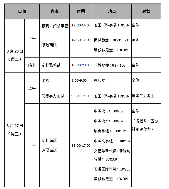 七、 复试时间安排