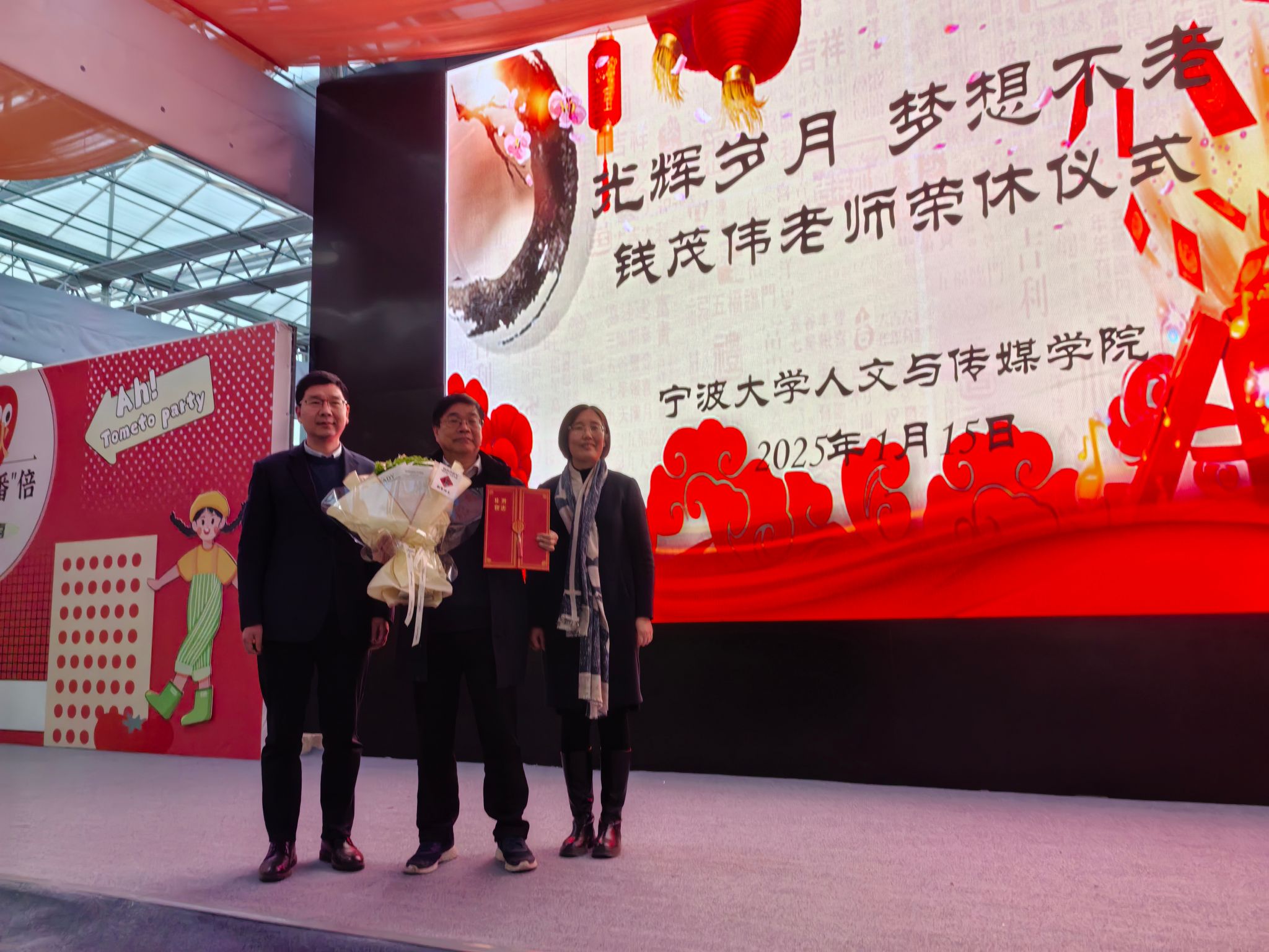 联欢会的第一个正式环节,是为历史系钱茂伟教授举行的“光辉岁月·梦想不老”主题荣休仪式。仪式上,张佩芬书记和历史学系李翔老师分别代表学院和学系为钱茂伟教授做了荣休致辞,李乐院长为钱茂伟教授颁发荣休证书并献上鲜花。随后,钱茂伟教授发表了退休感言,在感言中,钱教授回顾了自己职业生涯中的重要时刻,在场教职工也颇受启发。退休,只是代表着职业生涯的结束,但学术并不会因此而结束,相信钱教授会继续用他的专业能力和学术智慧,书写属于人生的精彩新篇章。整个荣休仪式在温馨和感激的氛围中谢幕,祝愿钱教授退休生活幸福快乐,笔耕不辍。