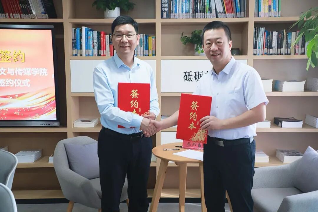 仪式伊始,俞海后对人文学院领导一行的到来表示热烈欢迎。并详细介绍了学校的办学特色、课程体系以及在人文社科领域取得的丰硕教学成果。他特别提到,希望借助大学的优质资源和平台,通过系列共建活动,能够有效提升学校的育人水平和人文氛围。
