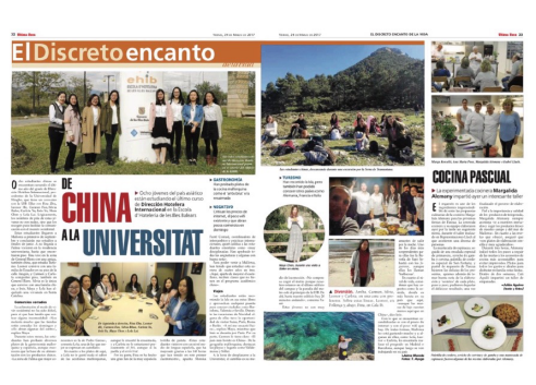 13级中西合作旅游管理专业的第二批共计13名同学奔赴西班牙巴利阿里群岛大学开始了为期一年的交换学习。随着我校和西班牙巴利阿里群岛大学合作办学项目的日益成熟,双方在课程设置和培养方案上日渐完善。本届学生在西班牙的课程设置更贴近专业培养目标也更具有行业应用性,理论教学与实践教学双管齐下,辅以大量的课堂团队作业,不仅为学生们建构了更完善的知识体系,更让大家有机会深入接触当地文化,提升语言水平,拓宽国际视野。巴利阿里群岛大学高度重视该合作办学项目,当地的报纸更是对在EHIB(该校酒店学院)学习的第一版主