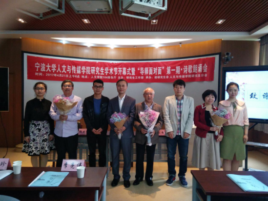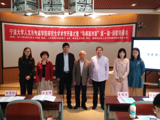 诗歌吟诵会结束之后,进行了第三项活动“导师面对面”。邀请了两组师生进行了面对面的交流与讨论,分别是王瑞成老师和李长云同学,张如安老师和朱艳霞同学。王瑞成教授讲到如今的学术环境等问题时,也简单谈了想法,并期待我们当代研究生能够沉下心来认真做学问,搞研究,人文专业的研究生要做学术的生产者,而不是学术的消费者。张如安教授谈到现在的科技非常发达,要获取资料相较于他们读研时代方便很多了,这是时代赋予的良好机遇。同时张教授还指出,当代研究生要多多动笔,保持写论文的习惯,并且一直坚持下去,做到笔耕不缀,这不仅仅是对我们学业的要求,对我们今后的工作都有很大的帮助。