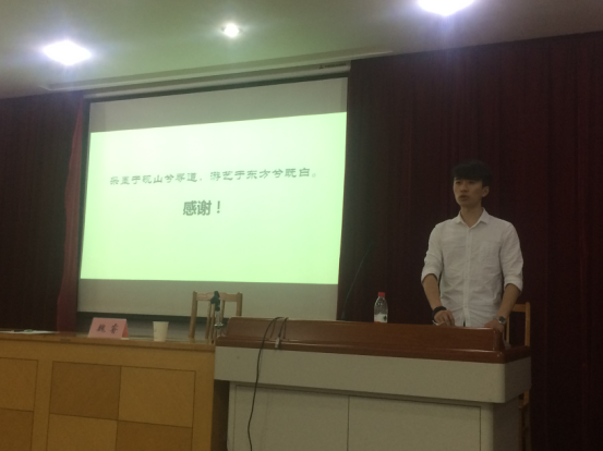 下午3时10分,讲座正式开始。魏睿首先由“梦想”引入,告诉同学们他的梦想其实就是一直画画,由此展开其从小到大的发展历程。魏睿小时候酷爱画画,并展现出优秀的天赋,坚持画画。高考之后,魏睿来到了第一版主