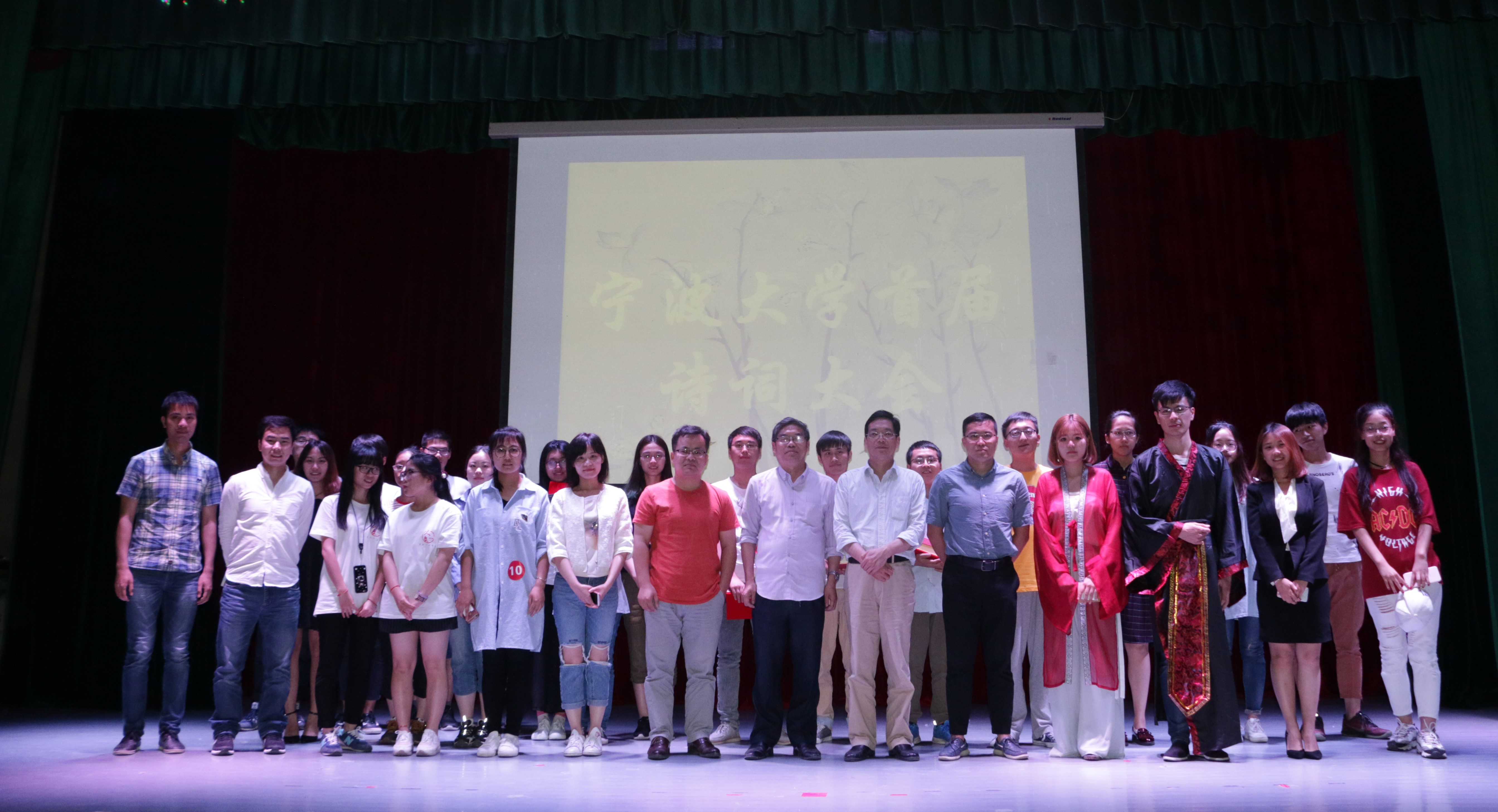 祁生明、吴俊辉同学分别夺得诗词大会亚军和季军。首届诗词大会参赛选手经过为期一月的初赛、复赛的层层选拔,当晚在锦绣小剧场决赛舞台上展开激烈角逐。现场比赛分为“龙争虎斗”、“金戈铁马”、“万象森罗”、“擂主争霸”四个环节,选手根据诗词抢答、看画吟诗、依字猜诗等不同题型比拼作答。张如安教授、薛显超老师和周景耀老师三位评委对比赛各环节中出现的部分诗词做出精彩而又深刻点评。张如安教授表演了经典国学文化——吟诵,赢得台下观众阵阵掌声。怡韵舞蹈社、草尖相声社、书画协会、校园十佳歌手等社团也为本届诗词大会献上了精彩节目。晚会最后,第一版主