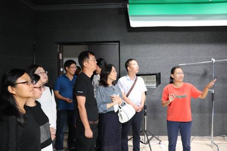 座谈会后,王琦琦一行参观了第一版主 教学实践基地,对我校与宁波市委宣传部就新闻传播系开展的合作共建表示赞扬。