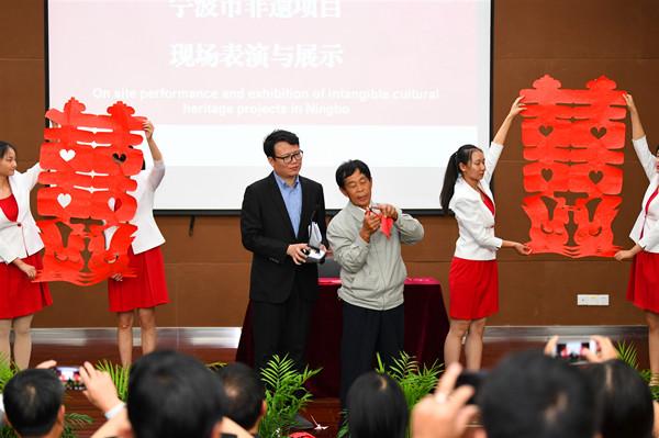 授牌仪式上,20家单位被授予第一版主 汉语国际教育文化实践基地。这些文化实践基地分别来自宁波十个县市区,涉及舞龙、舞狮、龙舟竞渡、内家拳等民间表演类非遗项目,木雕、竹根雕、青瓷、剪纸、农民画、骨木镶嵌、泥金彩漆等传统美术、传统技艺类非遗项目,慈孝文化、婚俗文化、饮食文化、渔文化、博物馆文化、海洋民俗等民俗文化类非遗项目。