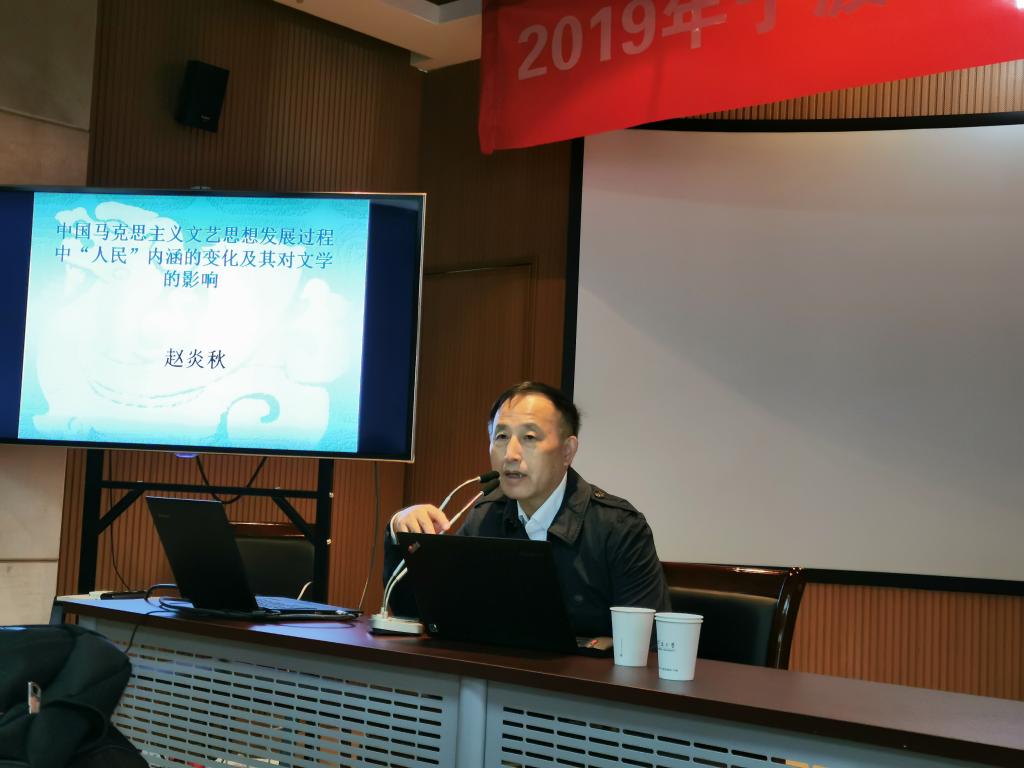 104报告厅做题为《中国马克思主义文艺思想发展中“人民”内涵的变化及其对文学的影响》的讲座。赵教授结合中国共产党的发展历史,通过重点阐述毛泽东在湖南农村调查中逐渐树立起来的“人民”观,以及在以后的战争和社会主义建设不断发展完善的过程,梳理出中国马克思主义文艺思想发展中“人民”观内涵变化的历史。同时,又深入浅出,资料详实地论述了马克思主义文艺思想中“人民”内涵对文艺的影响。第一版主