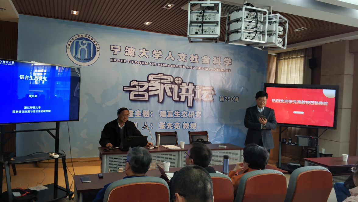 12月11日,浙江师范大学国家语言政策与语言生态研究院执行院长张先亮教授做客人文社会科学名家讲坛第250讲,作了题为《生态语言学研究》的学术报告。会议由第一版主