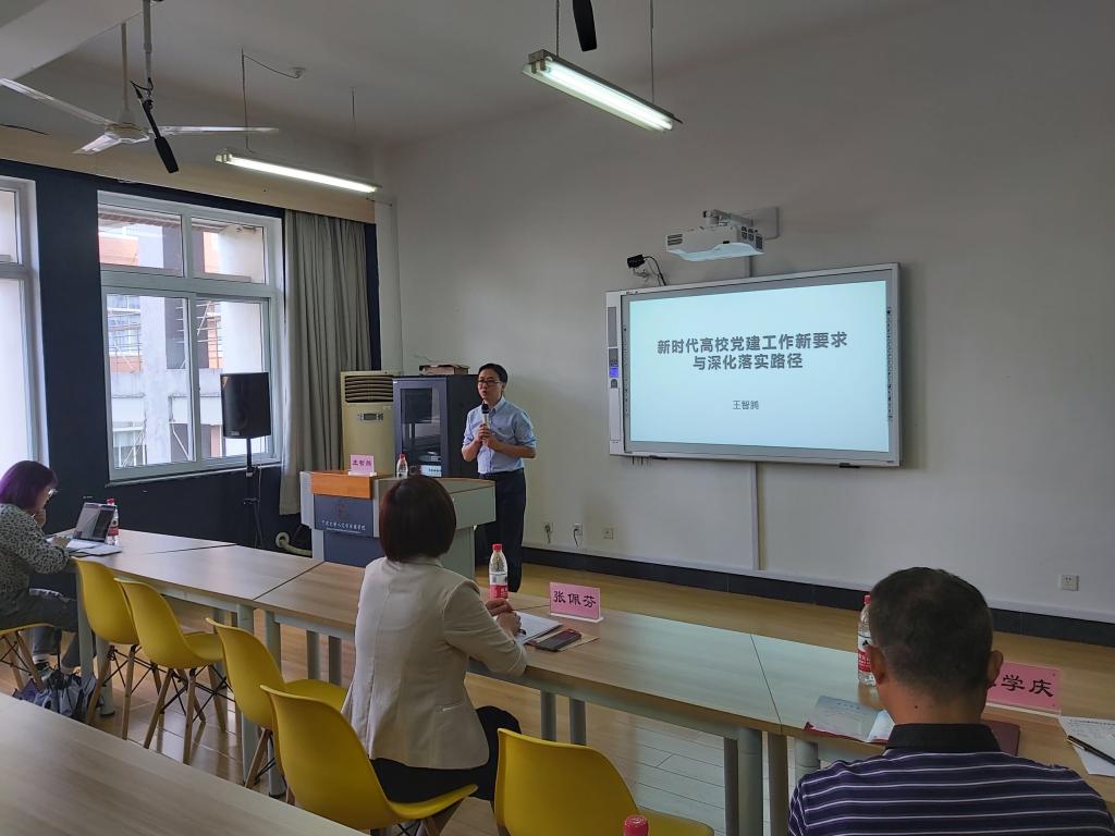 首先由校党委组织部副部长王智腾做的题为《新时代高校党建工作新要求与深化路径》的专题报告,他从新时代高校党建工作的新要求和新要求的落实路径两个方面重点阐述了如何提升基层各级党组织的组织能力,强化党组织的政治作用;党支部如何强化党建引领能力,促进党建与业务的融合发展和相互促进。随后是全国高校党建工作样板党支部--第一版主