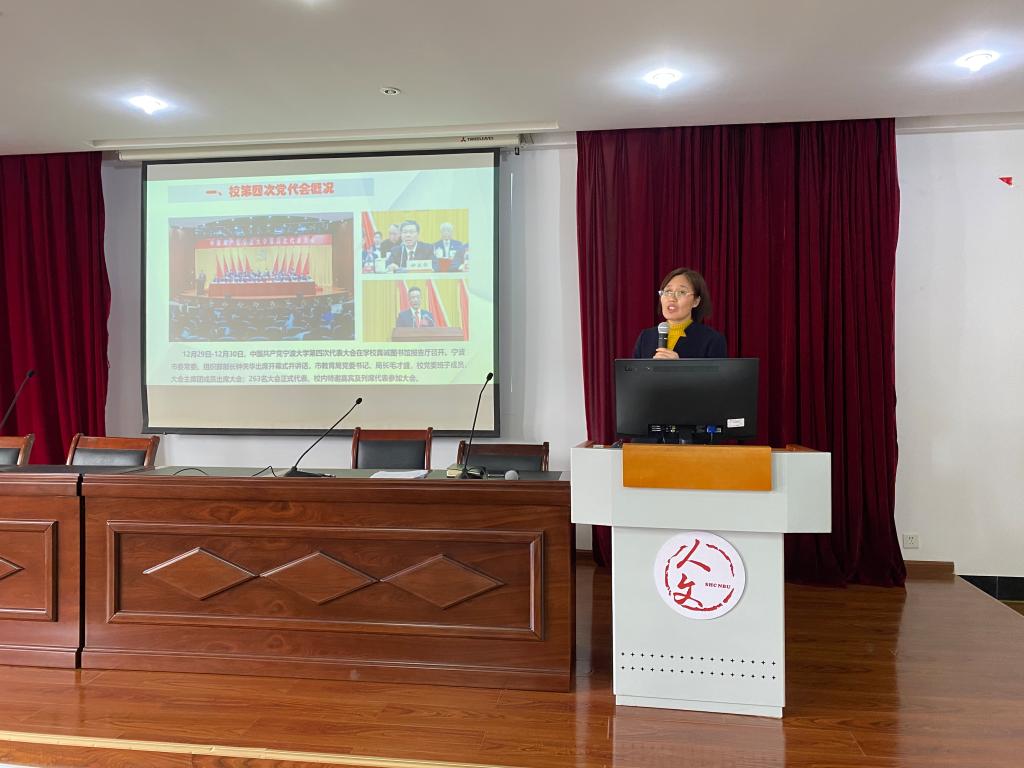 在全院教职工大会上,学院党委书记张佩芬同志向全院教职工传达了学校第四次党代会召开情况、两委工作报告主要内容,组织老师们围绕第三次党代会以来学校取得的工作成就、当前学校发展所处的历史方位、目标与战略,“十个‘新’”的主要任务,以及全面构建党建引领事业发展新格局等方面进一步学习贯彻大会精神。