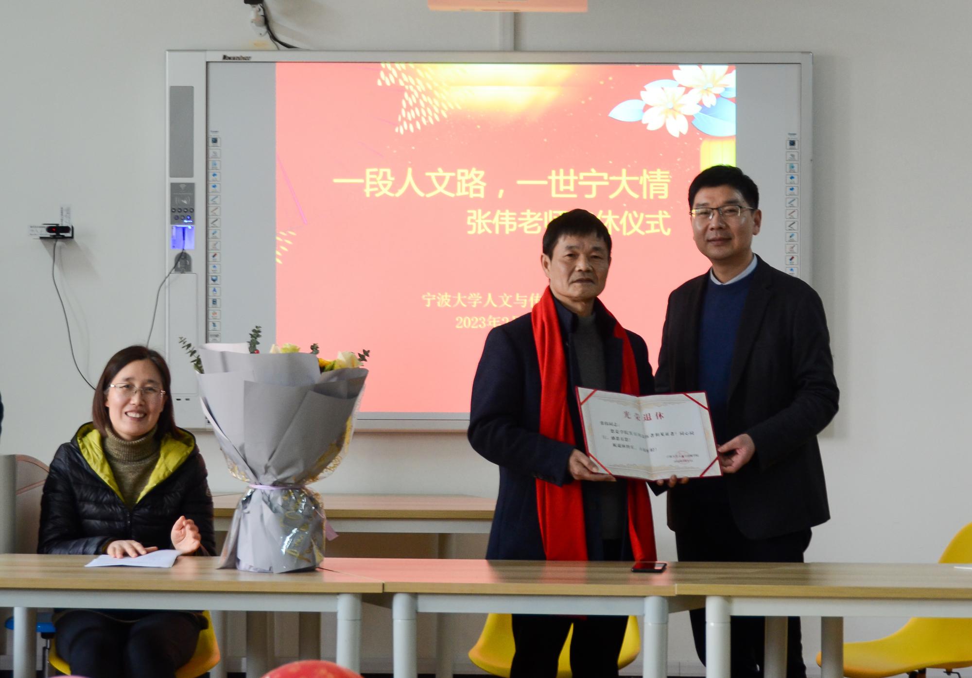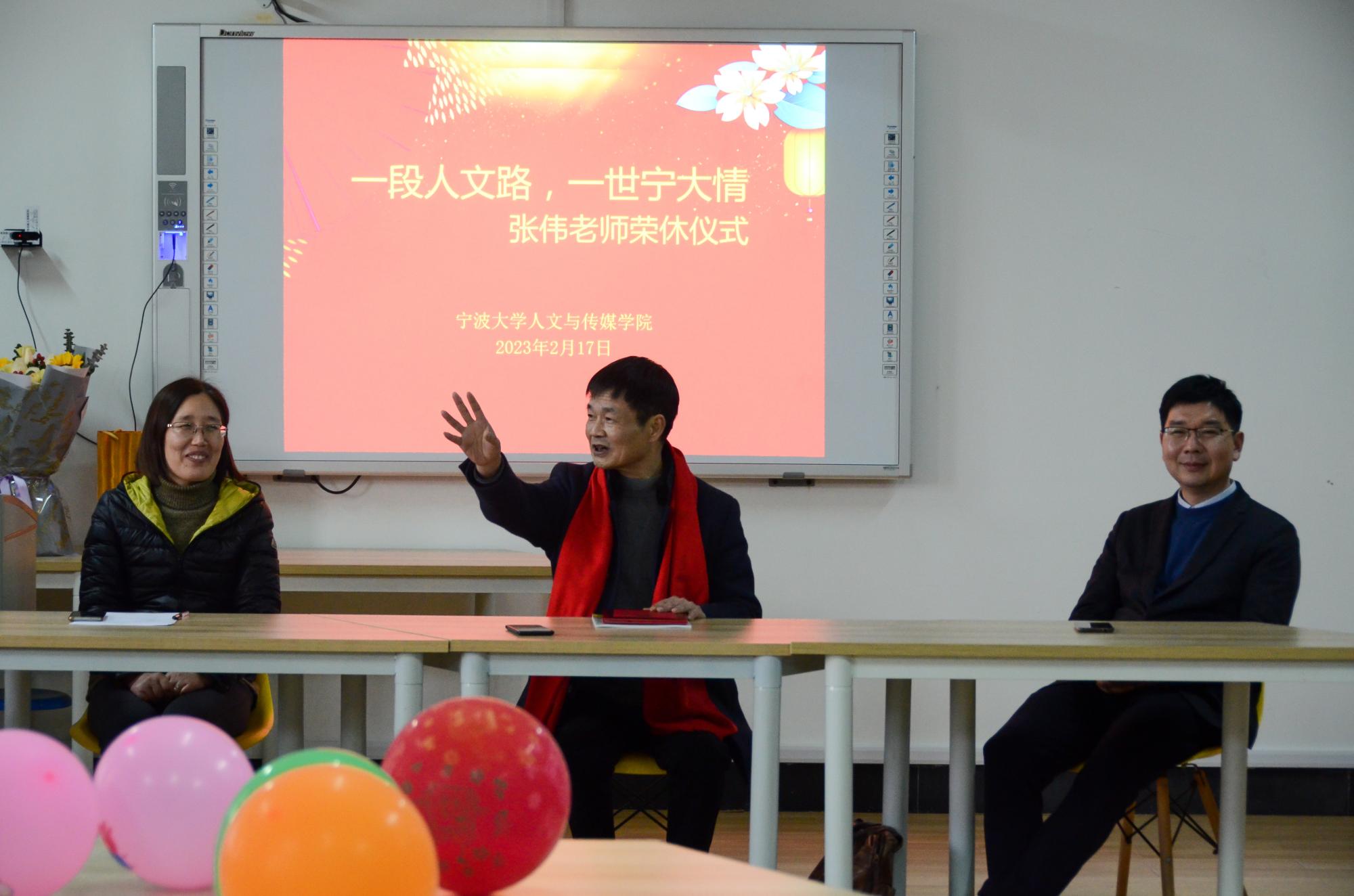 在包玉书科学楼10号楼208室举办张伟教授荣休仪式,学院党政领导班子全体成员、行政教辅各办公室负责人以及历史学系全体教师30余人参加了仪式。