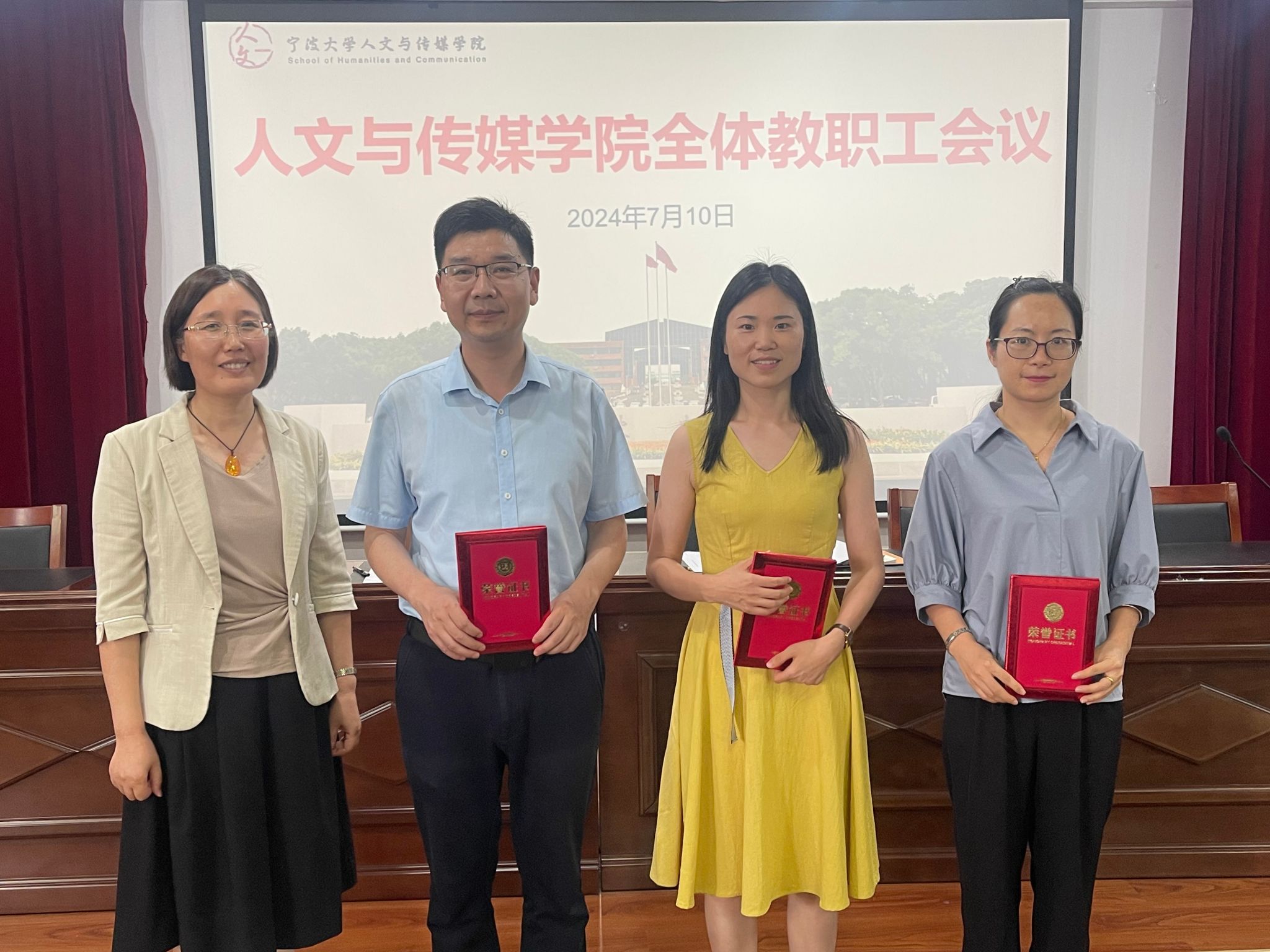 会上,党政领导班子其他成员从各自分管工作出发分别对对本科教学、研究生教学、科学研究、学科建设、学生工作、安全稳定、师德师风建设等工作进行了通报和布置。会议还对2024年获评“最美文院人”的教职工进行了表彰。