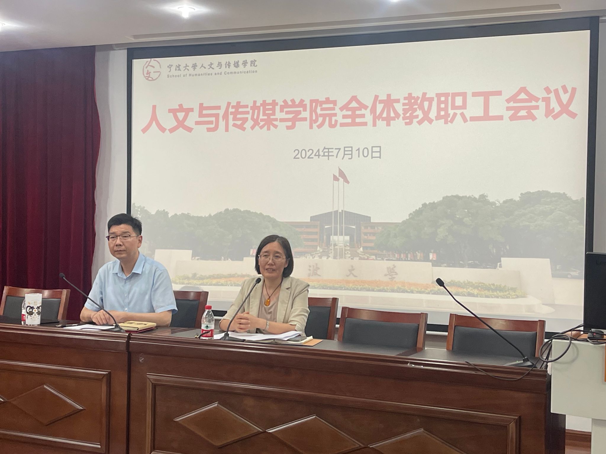 在包玉书科学楼10号楼209报告厅召开全体教职工大会。