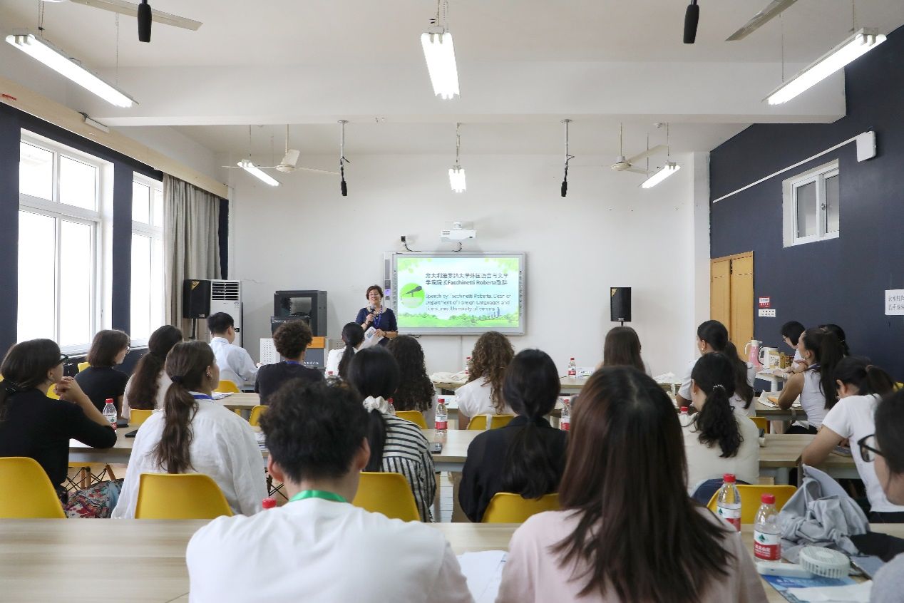 执行院长李乐、意大利维罗纳大学外国语言与文学学院院长Facchinetti Roberta出席并致辞,会议由国际处杨美美老师主持。