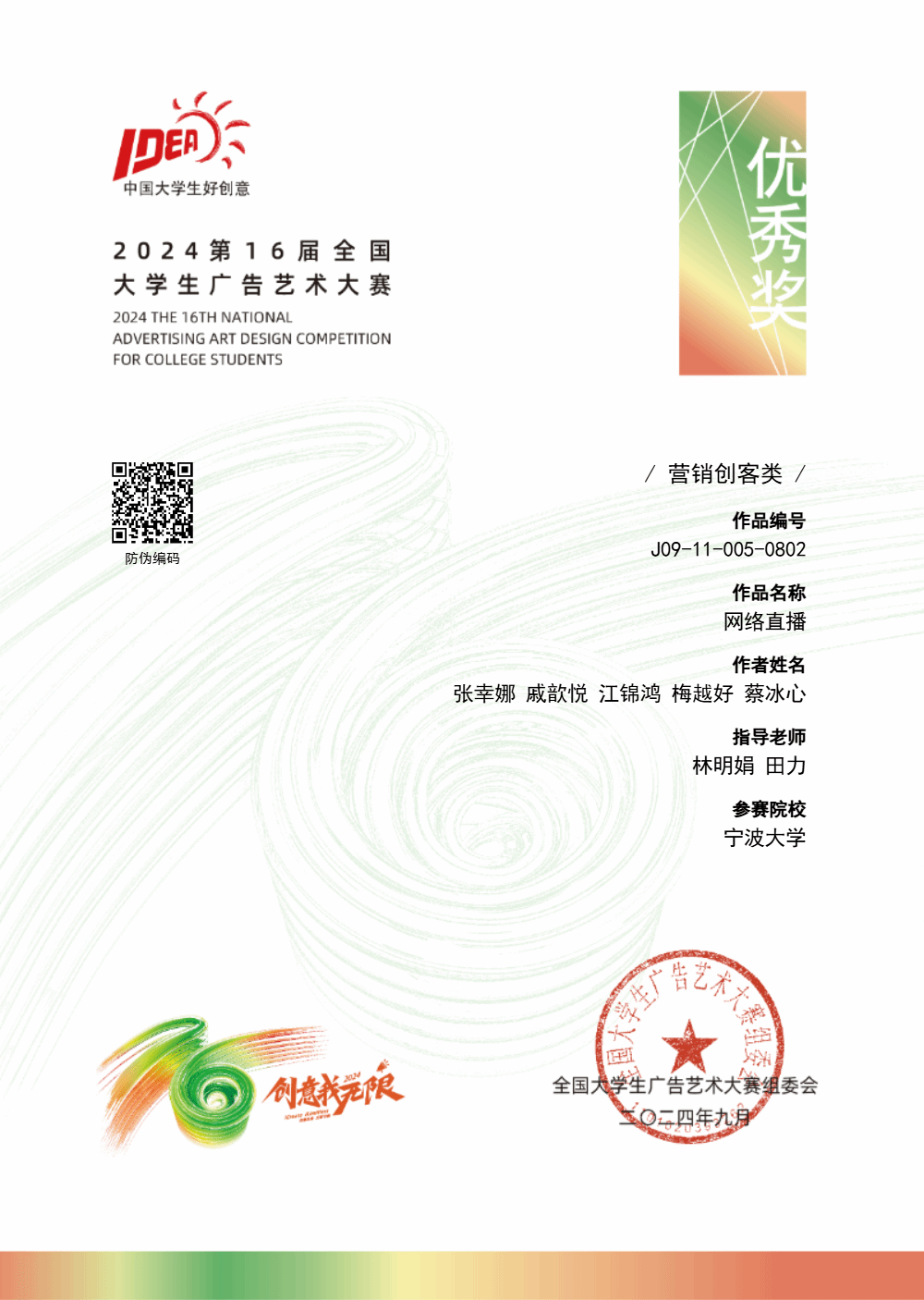2024大广赛(全国优秀奖)(营销创客类)《网络直播》张幸娜,戚歆悦,江锦鸿,梅越好,蔡冰心