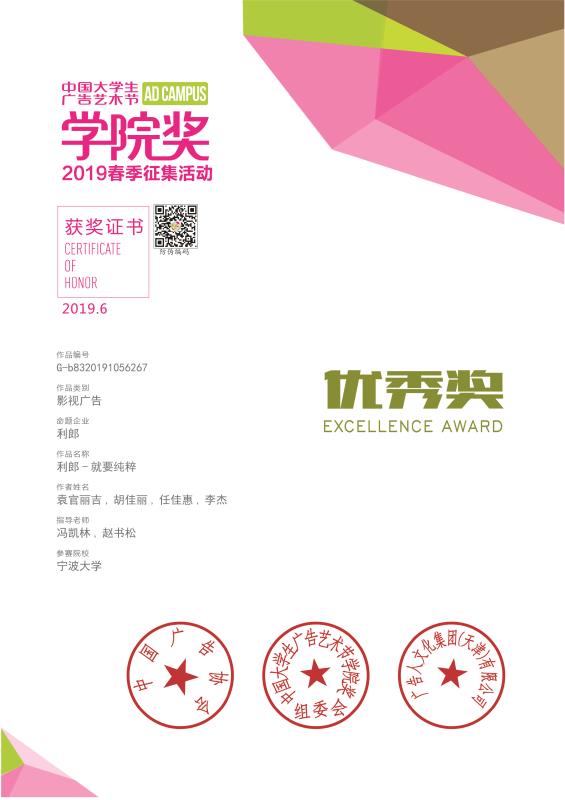 2019学院奖春季赛(参赛作品)( 视频类 )《利郎-就要纯粹》16广告袁官丽吉等