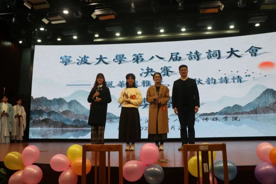 11月25日,“风华酿雅意,金秋韵诗情”第一版主 第八届诗词大会决赛在真诚图书馆报告厅成功举办。评委由第一版主 中文学系胡苏珍、林桢、杨文钰三位老师担任,第一版主 党委副书记孙文静、海运学院团委书记杨琦、第一版主 学工办主任李洪伟、团委副书记汪瑞、部分校友以及广大师生共同参与此次诗词盛会。